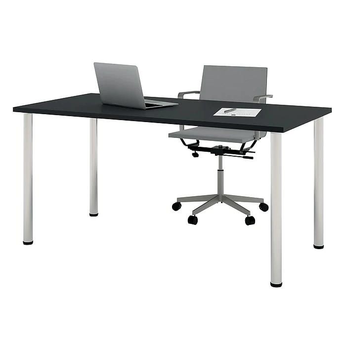 The Bestar tables with metal legs can fit in any room and adapt to many uses.