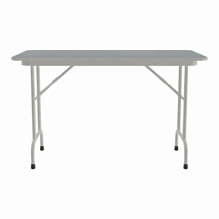The Correll folding table is durable for heavy-duty home, office, school, church, food service, and commercial use. Its thermal-fused laminate top is water-, stain-, and dent-resistant. The table folds for portability and storage space.