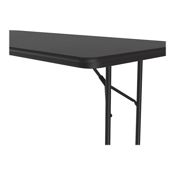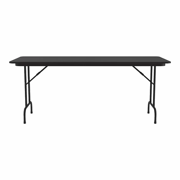 The Correll folding table is durable for heavy-duty home, office, school, church, food service, and commercial use. Its thermal-fused laminate top is water-, stain-, and dent-resistant. The table folds for portability and storage space.