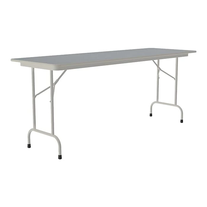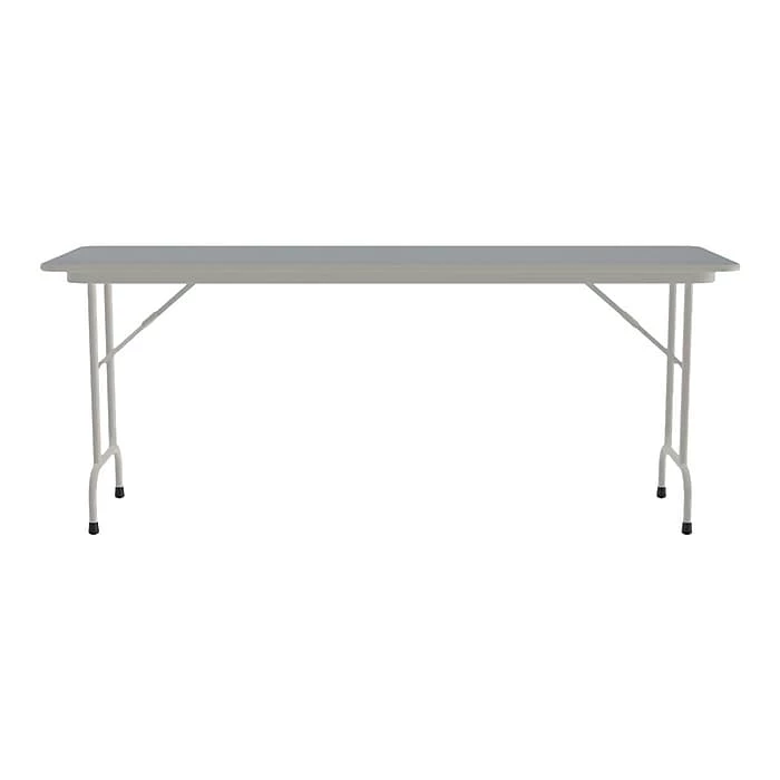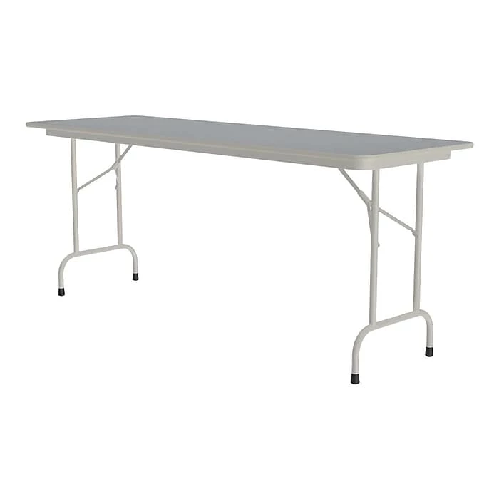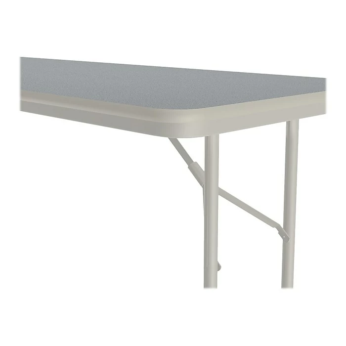 The Correll folding table is durable for heavy-duty home, office, school, church, food service, and commercial use. Its thermal-fused laminate top is water-, stain-, and dent-resistant. The table folds for portability and storage space.