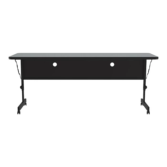 - Gray granite finish table surface is made of two-sided thermally fused laminate with high-density particleboard core