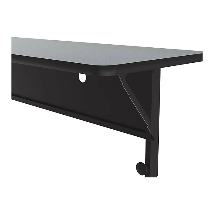 This mobile nesting option allows for easy fold-up and compact storage. The design allows for easy setup, configuration, take-down, and storage. Ideal for heavy-duty use in schools, universities, offices, hotels, training rooms, and conference areas. The thermal fused laminate top is water-, stain-, and dent-resistant.