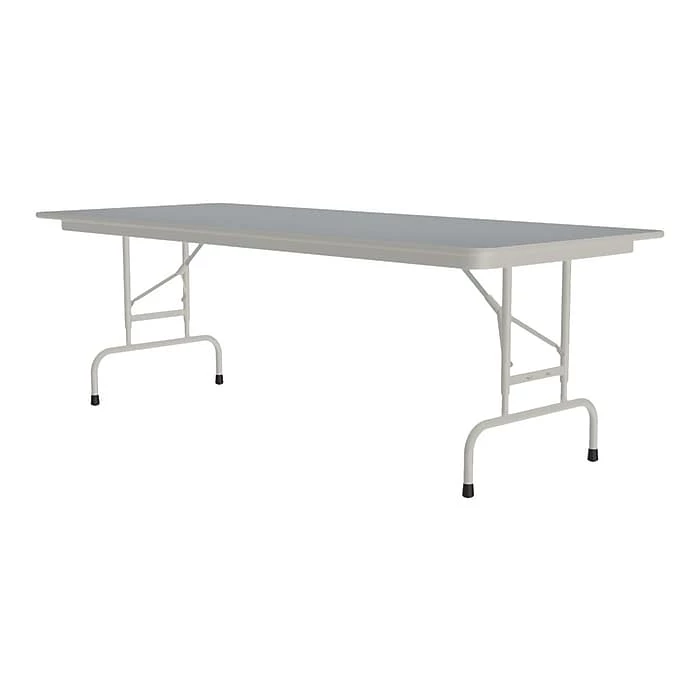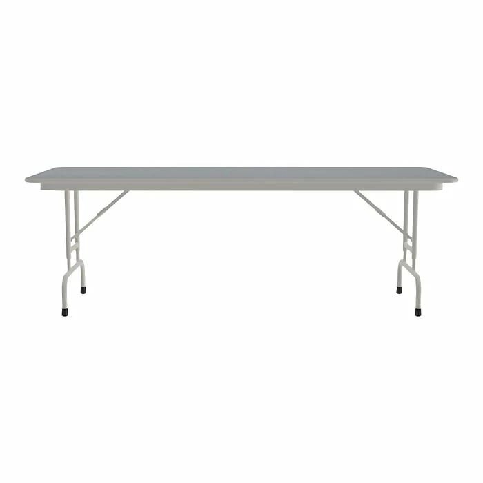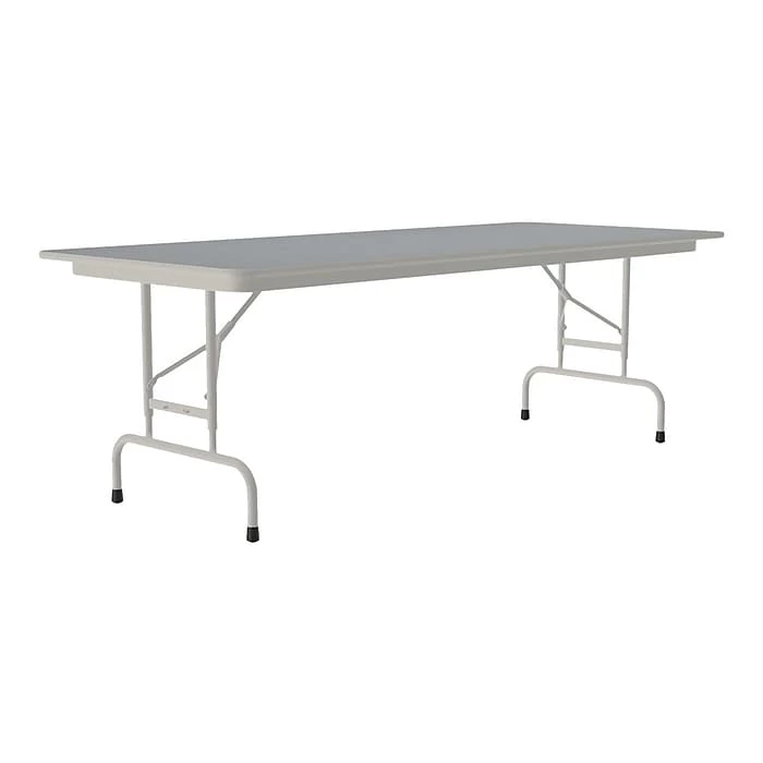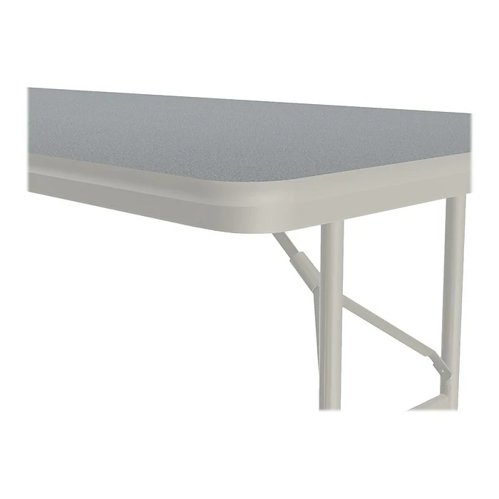 The Correll folding table is durable for heavy-duty home, office, school, church, food service, and commercial use. Its thermal-fused laminate top is water-, stain-, and dent-resistant. The table folds for portability and storage space.