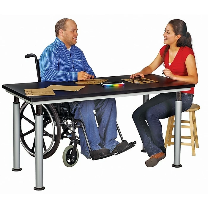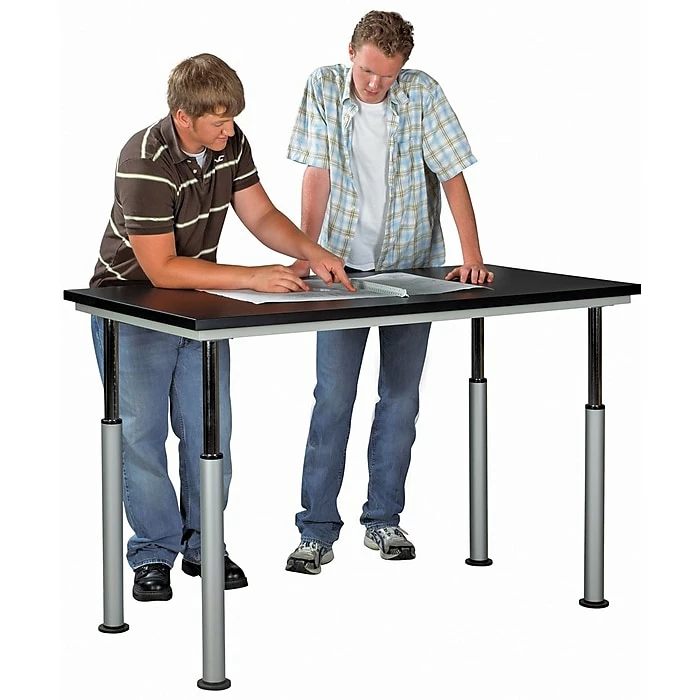 - Black Plastic Laminate Top with Powder Coated Legs Include Adjustable Glides