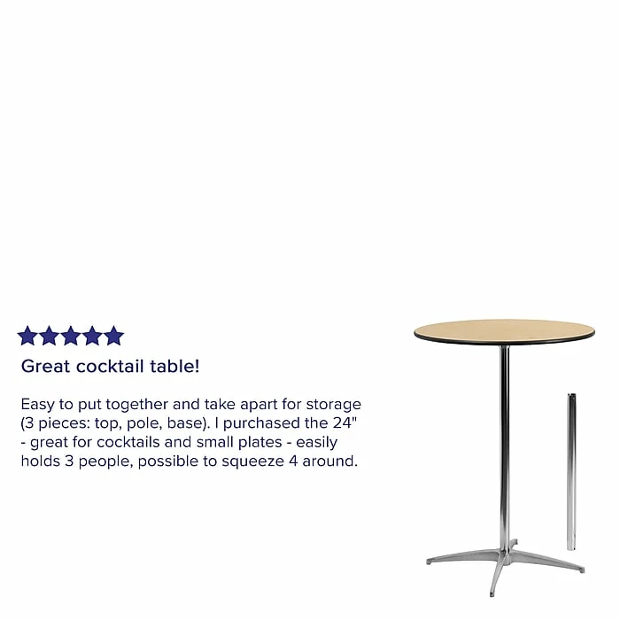 Flash Furniture 30″ Round wood cocktail table with black PVC edge and self-leveling floor glides has sturdy aluminum base. Table with 30” and 42” columns features top and bottom with quadruple and double coated polyurethane varnish for durability.