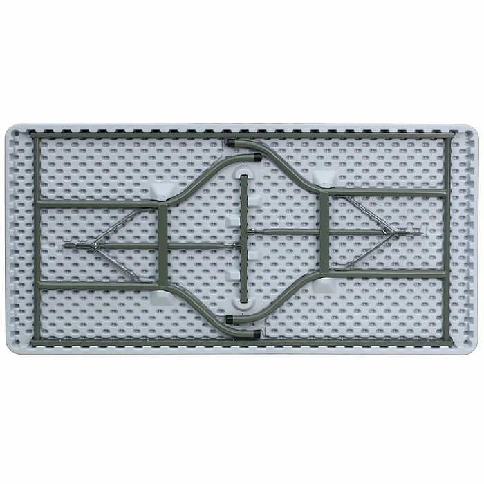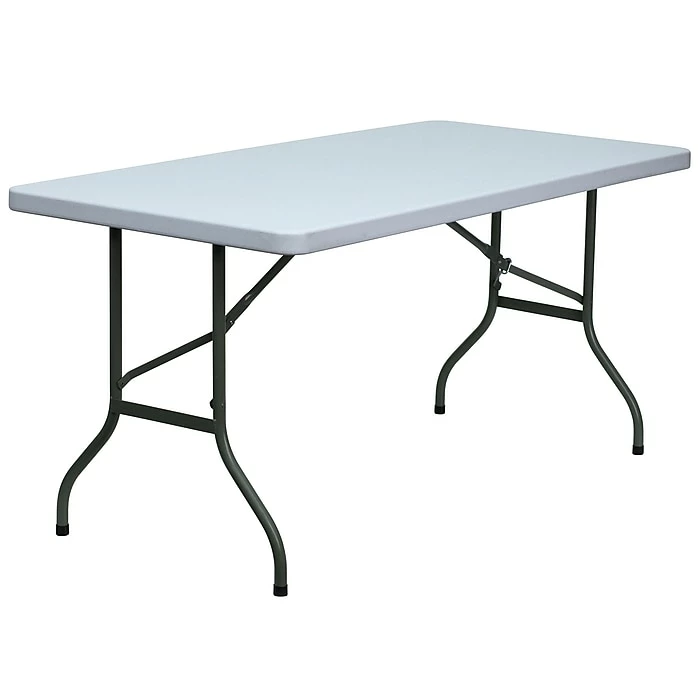 Flash Furniture Rectangular plastic folding table features a high quality construction for durability. Table with non-marring foot caps measures 29″ x 60″ x 30″ and folds quickly for convenient storage, sold as 6 per pack.