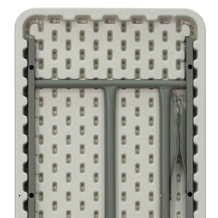 Provide sufficient space with this table. Its durable blow-molded top resists damage caused by water, impacts, and stains which simplifies routine cleanings, and the locking legs enhance portability. The 220-pound static load capacity of this Flash Furniture rectangular folding table easily accommodates punch bowls and heavy platters at company functions or equipment and supplies for presentations during project meetings.