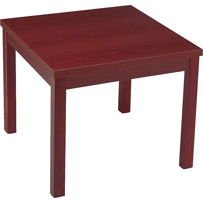 Durable materials and construction make occasional tables from HON ideal for lobbies and reception areas. This 24″ square corner table is designed to go between lounge or guest chairs in an L-arrangement. Laminate color is Mahogany.