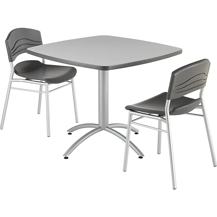 Iceberg® CafeWorks Square cafe table in gray color features melamine laminate surface for durability and aesthetic look. Table of size 36″ has sturdy steel base for added strength.