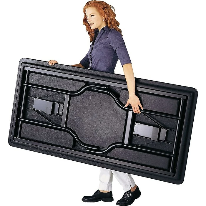 Iceberg 5′ Indestruc-Tables™ Folding table in granite finish features oval legs that lock into underside of table. Table has 2″ thick blow molded high-density polyethylene smooth top with inlay surface.