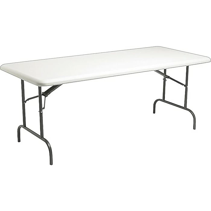 Set up for events quickly and handle temporary demands with this commercial-grade folding table. Featuring a blow-molded high-density-polyethylene surface and durable round tubing legs, this table supports up to 1,200 pounds of evenly distributed weight and easily withstands dents and scratches. This ICEBERG IndestrucTableTOO 1200 Series table offers easy portability with its lightweight construction and takes up minimal storage space thanks to the folding design.