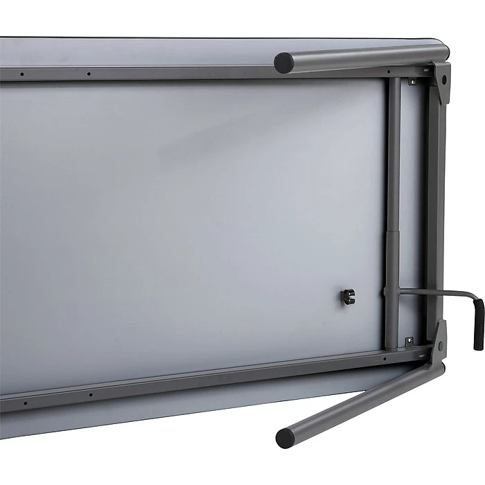 - Folds flat for compact storage, bumpers protect tables when stacked