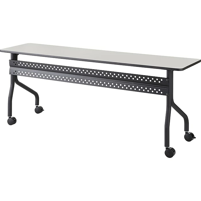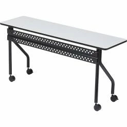 ICEBERG® OfficeWorks Mobile training table in gray color measuring 29″ x 72″ x 18″ features wear-resistant melamine top and steel modesty panel for durability. Table offers easy transport with locking and non-locking casters.