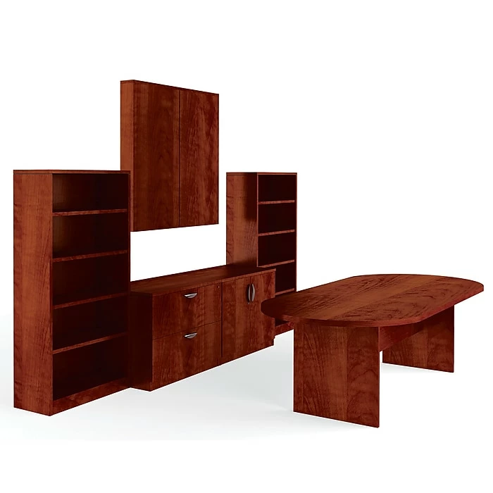 - Bundle contains: Racetrack Conference Table, 1 Lateral File, 1 Storage Cabinet, 1 Bookcase, 1 Presentation Board and 1 Common Top