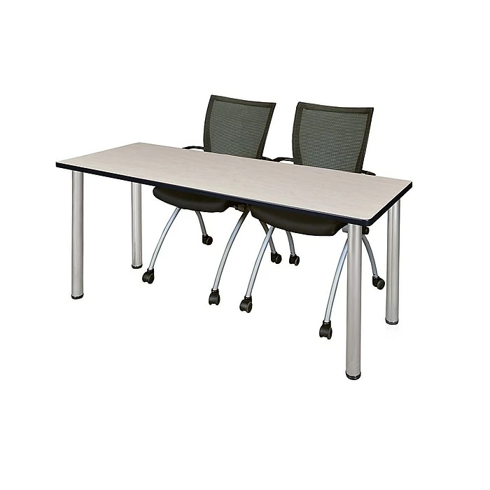 - Set includes 66-inch Kee training table with chrome post legs and 2 Apprentice Nesting Chairs
