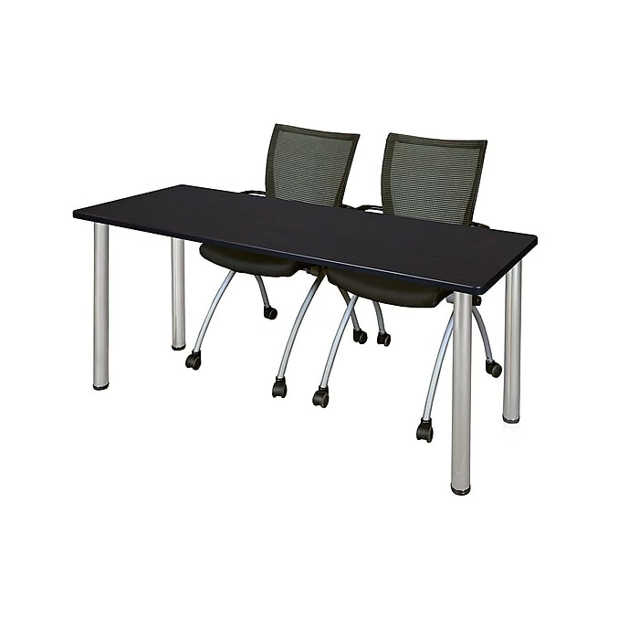 - Set includes 72-inch Kee training table with chrome post legs and 2 Apprentice Nesting Chairs