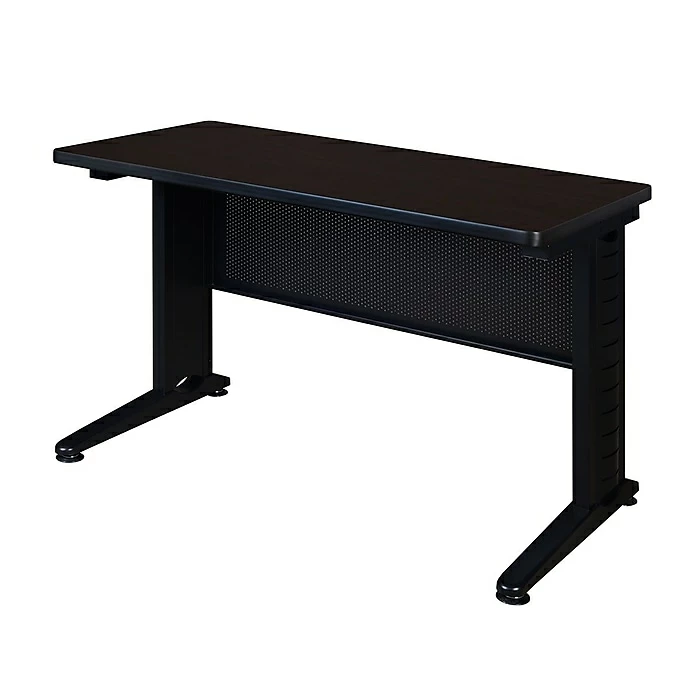 Fusion Training Tables bring a modern yet functional edge to any training room or lab. This 42-inch table is good looking and has amazing interior wire management capabilities. Black metal C-Legs have a vented compartment with removable cover that runs the length of the leg. Wires run from a power source on the floor through the legs and cabling cutouts in the modesty panel and up to desktops for instant connectivity. The tabletop is constructed of a thermal fused melamine Mocha Walnut laminate that is 1-inch thick and finished with a black T-Mold edge band. Rounded corners make the table safer for everyone. Laminates are scratch, stain and burn resistant and wipe clean easily. The legs and modesty panel are constructed of a sturdy metal with a stylish black finish to match any decor. Fusion case goods are backed by a 10-year limited manufacturer’s warranty.