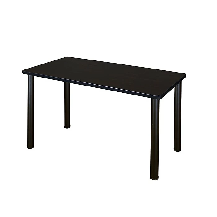 Give everyone more room with Kee tables. Kee post legs come four to a set and are adjustable so you have a steady table with no wobble. This 42-inch long training table assembles in a snap with just a few screws. The table is constructed of a thermal fused melamine Mocha Walnut laminate tabletop that is 1-inch thick and finished with a black T-Mold edge band. Laminates are scratch, stain and burn resistant and wipe clean easily. Rounded corners make the table safer for everyone. A sleek alternative to pedestal style bases, this set of post legs comes in a classic black to match any decor. The legs are constructed of tubular steel with adjustable glides on the bottom of the base. Kee tables are backed by a 10-year limited manufacturer’s warranty.