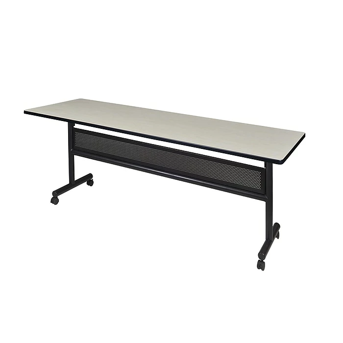 Set up a meeting room in a flash with Kobe Flip Top Tables. Unlock the quick-release lever and flip down the entire tabletop to nest together when not in use. Perfect for rooms with variable class size, the Flip Top tables save set up time and storage space. A stylish perforated black modesty panel provides knee space privacy in open learning environments. Locking casters make these tables mobile and are ideal for computer labs, training rooms, classrooms and more.