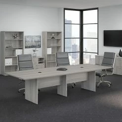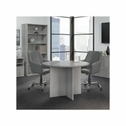 Bush Business Furniture 42W Round Conference Table With Wood Base, Platinum Gray (99TB42RPG)