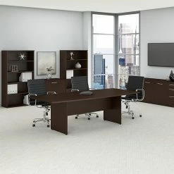 Bush Business Furniture 42W Round Conference Table With Wood Base, Mocha Cherry (99TB42RMR)