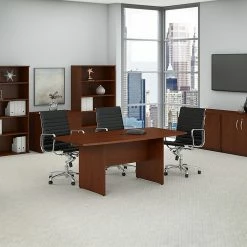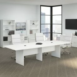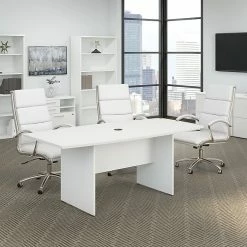Bush Business Furniture 72W X 36D Boat Shaped Conference Table With Wood Base, White (99TB7236WH)