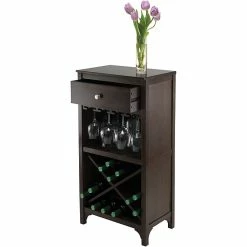 Winsome Ancona X Shelf Modular Wine Cabinet With 1-Drawer, Glass Rack, Dark Espresso