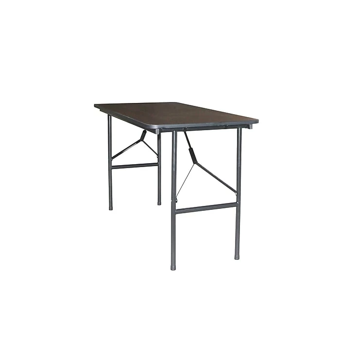 Add to your building’s furnishing options with this rectangle folding table. The rich walnut finish offers a classic look, while the sturdy metal legs provide added stability and support. This table holds up to 300 pounds of evenly distributed weight, making it a versatile option for your business. A durable melamine surface stands up to frequent use, and the folding design makes it easy to store this wood folding table in between uses.