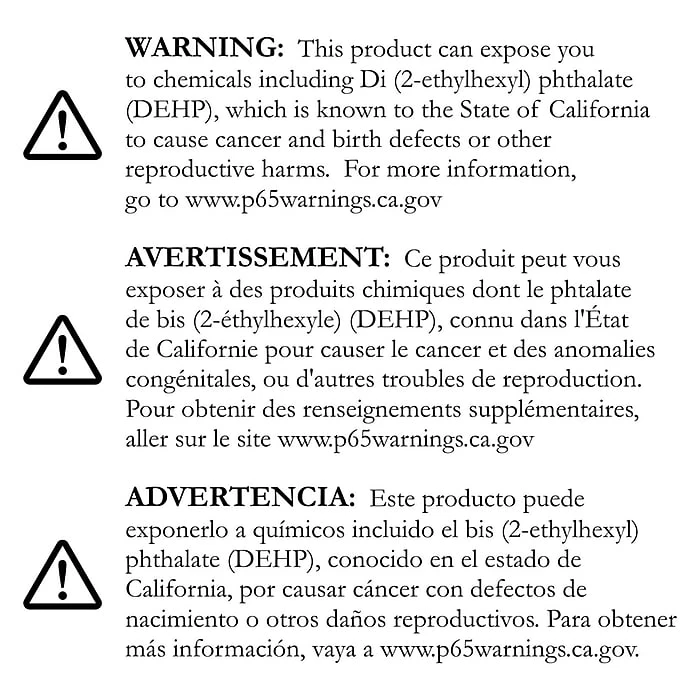 - âš WARNING: This product can expose you to chemicals including Di (2-thylhexyl) phthalate (DEHP), which is known to the State of California to cause cancer and birth defects or other reproductive harms. For more information, go to www.p65warnings.ca.gov