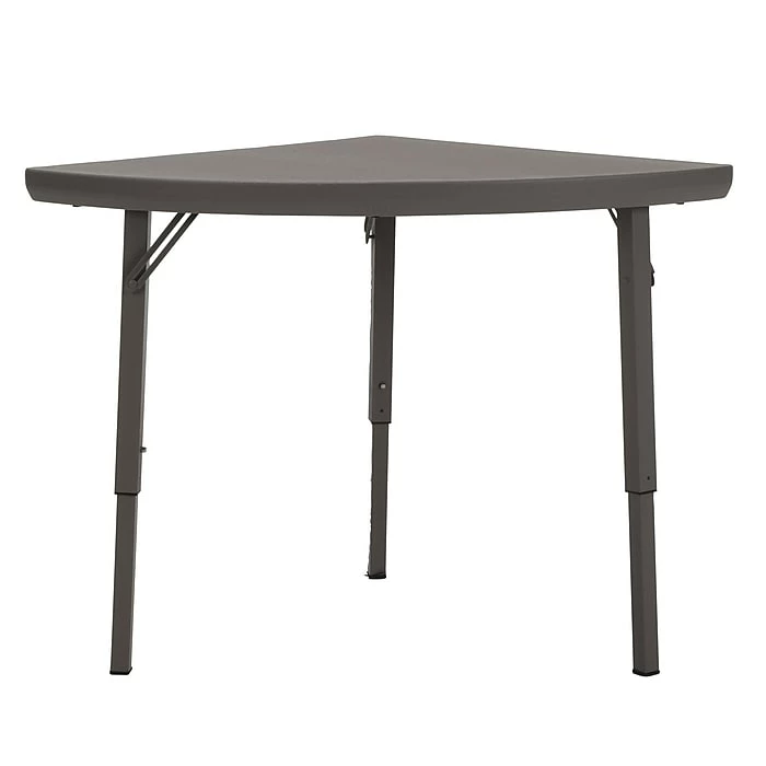 The Premium Collection Corner Folding Table constructed of high-density polyethylene and a powder coated steel structure redefines the market for lightweight, folding tables. This table features a table joining system which allows tables in the Premium Collection to be joined together for a variety of configurations. Square section legs combined with a beveled table top and a warm brown color afford an elegant yet simple aesthetic appearance for this table.